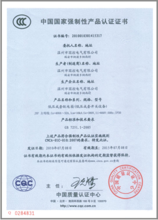 產(chǎn)品3C認證證書