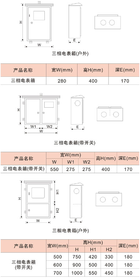 三相電表箱是一種安裝三相電能表的配電箱,門上開有抄表窗口,主要用于工礦企業(yè)需要三相電力的配電系統(tǒng)中。