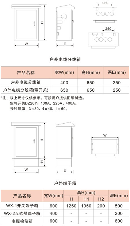 | 戶外不銹鋼端子箱適用于交流、直流電路中,采用標準鋼板不銹鋼臺架,加裝端子組成成套裝置后,作為變壓器、斷路器、互感器等電力設(shè)備的接線端子箱使用。 不銹鋼電纜分線可分為戶內(nèi)、戶外兩種,戶內(nèi)型適用于各種建筑物中的低壓電纜分接支線,戶外型適用于城市住宅小區(qū)、工業(yè)區(qū)等,供戶外220/380V電纜樹干式網(wǎng)絡(luò)分支接線用。箱內(nèi)采用銅排安裝,并附有斷路器作控制及保護之用。 |