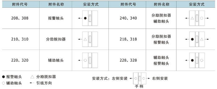 | 脫扣器附件代號及性能 |