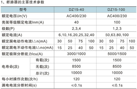 DZl5LE系列漏電斷路器(以下簡稱漏電斷路器),適用于交流50Hz,額定電壓為400/230V,額定電流至100A的電路中,作觸電漏電保護之用,具有隔離、斷相保護功能,適用于建筑行業(yè)分配電,并可用來保護線路和電動機的過載及短路以及作為線路的不頻繁轉(zhuǎn)換及電動的不頻繁轉(zhuǎn)換起動之用。 產(chǎn)品符合GBl4048.2-2001標(biāo)準(zhǔn)。 |